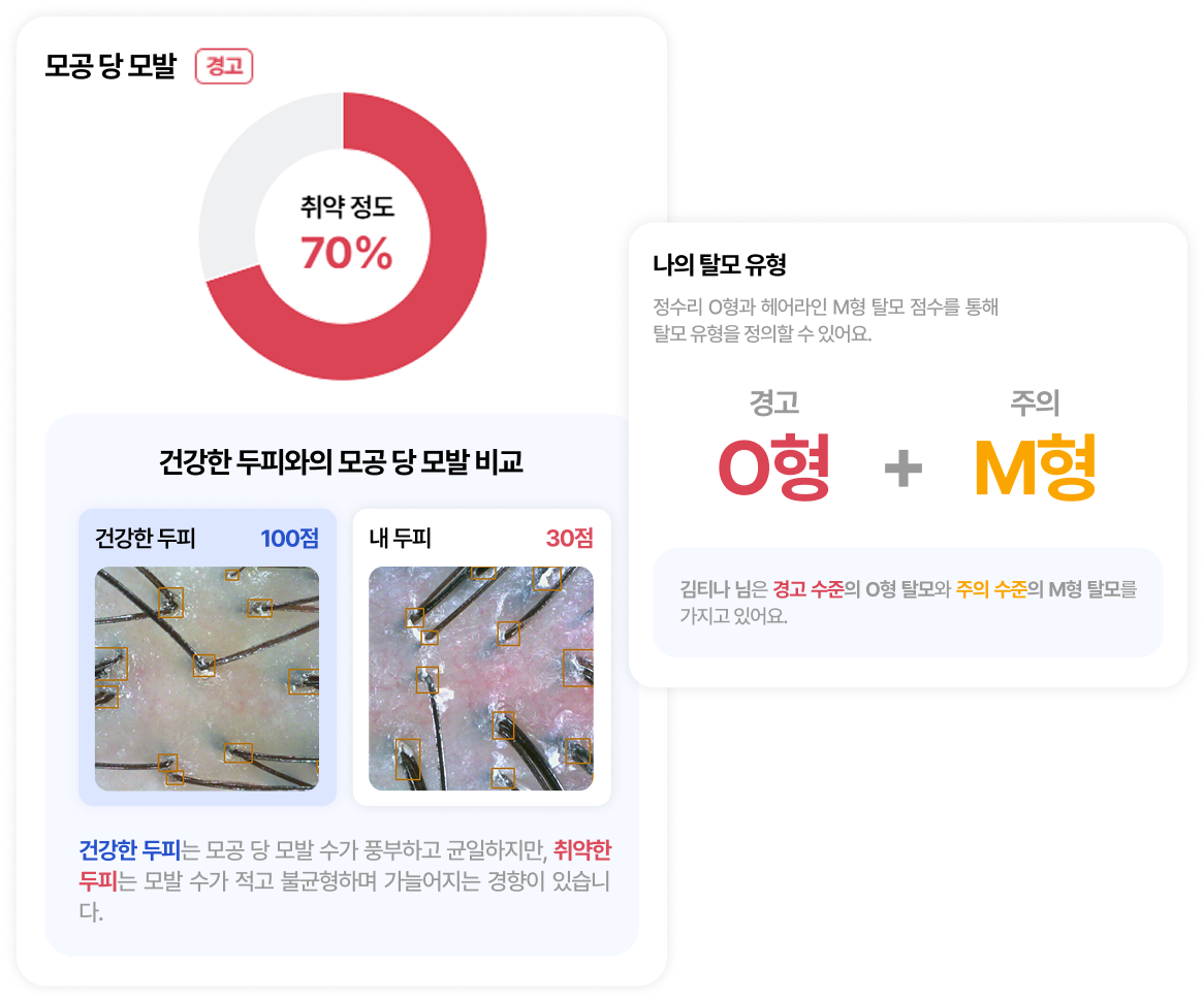 진행 중인 탈모 유형까지 분석할 수 있어요.